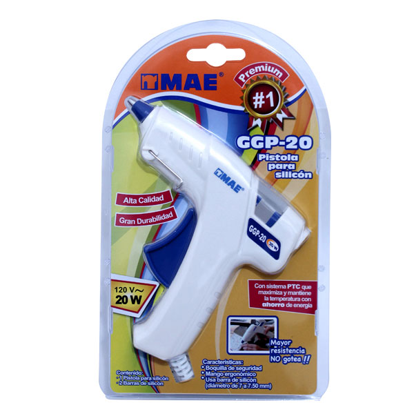 Boquilla de seguridad, mango ergonómico, utiliza barras de silicón de 7 a 7.5 mm de diámetro.