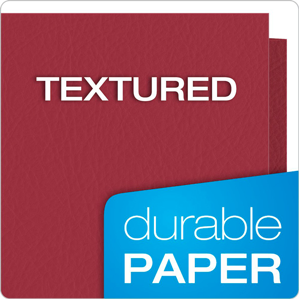 Carpetas Oxford® de dos bolsillos con capacidad para 100 hojas de papel tamaño carta (50 por bolsillo). Fundas texturizadas. Mantenga los contactos a mano con un tarjetero troquelado en el interior. Papel fabricado con un 10% de fibra reciclada con un 10% de fibra postconsumo.