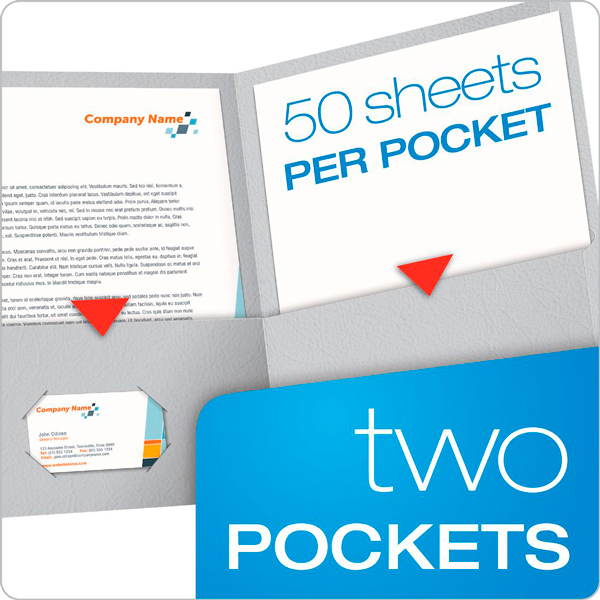 Las carpetas de dos bolsillos contienen hasta 50 hojas de papel tamaño carta en cada bolsillo.