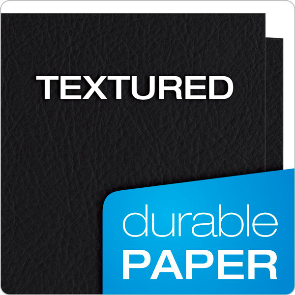 Carpetas Oxford® de dos bolsillos con capacidad para 100 hojas de papel tamaño carta (50 por bolsillo). Fundas texturizadas. Mantenga los contactos a mano con un tarjetero troquelado en el interior. Papel fabricado con un 10% de fibra reciclada con un 10% de fibra postconsumo.
